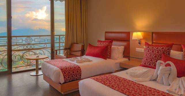 The private standing balcony affords a panoramic view of the town in the backdrop of the mountains. There are some rooms with triple bed – ideal for an extra adult in the room.